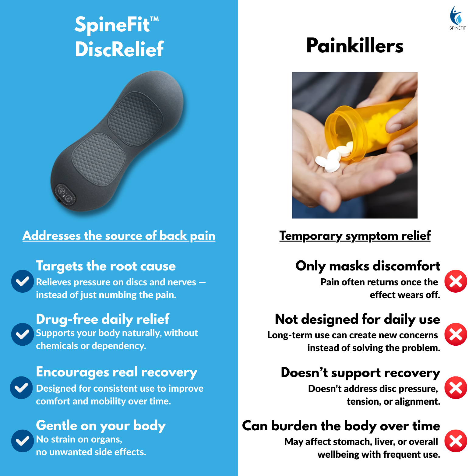 SpineFit DiscRelief is built to bring that daily support home, helping you ease pressure, relax tension, and feel more comfortable — without appointments.